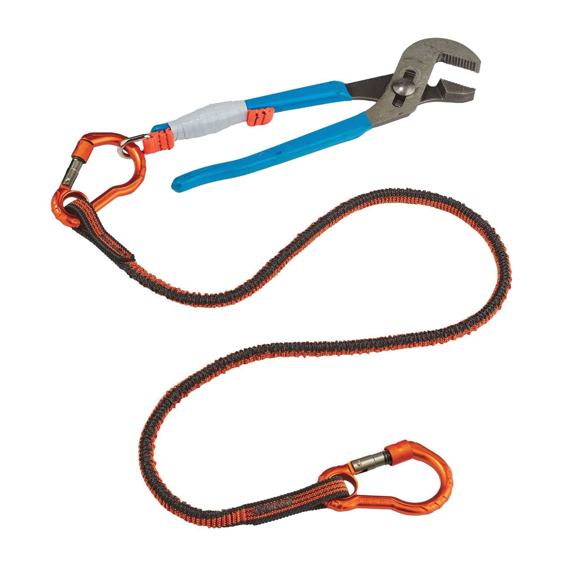 Squids 19822 3110F(x) Lightweight Standard Tool Lanyard, 38 to 70 in L Extended, 10 lb Capacity, Carabiner Connection, 1680D Polyester Elastic Blended Webbing, Orange/Gray