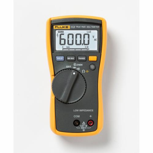 Fluke VCHEK FLUKE-113 Utility Digital Multimeter, 600 V AC/DC, 60 kOhm Measuring, 6/60/600 V AC/DC, 600 Ohm/6/60 kOhm, Backlight/Digital Display